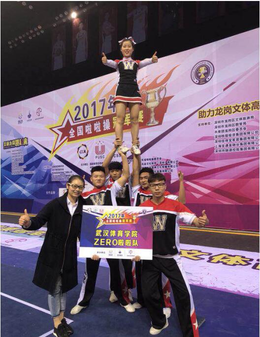12月22-28日,2017年全国啦啦操冠军赛在深圳举行,来自全国27个省、市、自治区共300余支队伍6000多名运动员参加了此次大赛。武汉体育学院啦啦操代表队获得多项冠军的好成绩,并且获得“全国啦啦操示范窗口高校”、“全国啦啦操五星级俱乐部”荣誉称号。