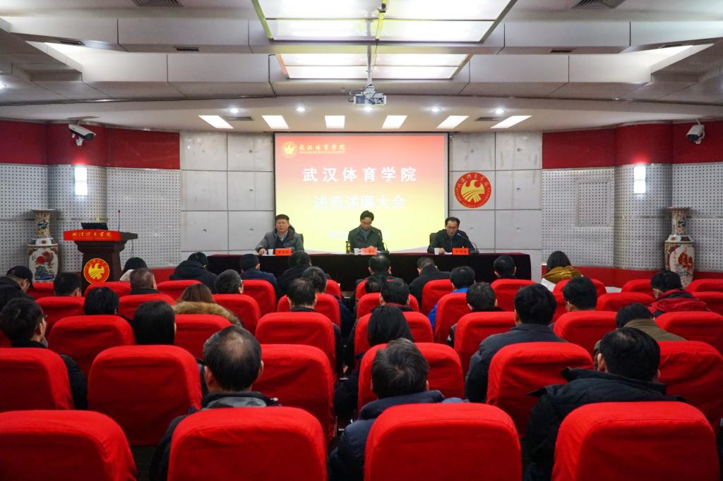 1月16日下午,武汉体育学院2017年度述责述廉大会在东教学楼第一报告厅召开,校党委书记彭道海、校长吕万刚分别代表学校党委、行政班子和个人述责述廉并接受民主测评。督导检查考核组第一组副组长、省教育科学研究院党委书记方向荣等一行来校对领导班子2017年度党风廉政建设、社会治安综合治理、法治建设等工作进行检查考核。